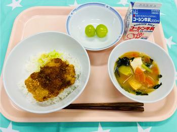 交流自治体の旅給食~山梨県甲州市~ 牛乳・ソースカツ丼・キャベツのレモン和え・生揚げのみそ汁・果物(山梨県甲州市産シャインマスカット) 山梨県甲州市は、山梨県の北東部にあり、ぶどうや桃などの果物の産地です。 文京区にゆかりのある小説家・樋口一葉の両親の故郷であることから、相互協力協定を結びました。 きょうは甲州市から届いたシャインマスカットを提供しました。 一粒一粒、味わいながら食べている児童の姿が印象的でした。 給食時間には、甲州市に関する紹介動画を見て、交流自治体への理解を深めました。 |