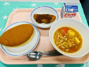 レンズ豆 牛乳・ミルクパン・白身魚のフライ・レンズ豆入りミネストローネ レンズ豆は、平たい形をしているので、「ひらまめ」とも呼ばれています。 きょうは、レンズ豆を使って、ミネストローネを作りました。 レンズ豆のおかげで、スープに少しとろみをつき、おいしくなります。 野菜もたっぷり入っていますが、どのクラスもよく食べていました。 |