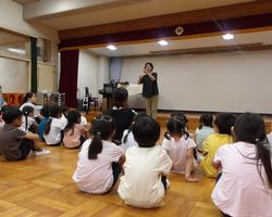7月11日(金)に本富士警察署の方に来園していただき、夏休み中の安全な過ごし方(交通ルール、自分の身を守るために必要なこと等)についての話を聞きました。