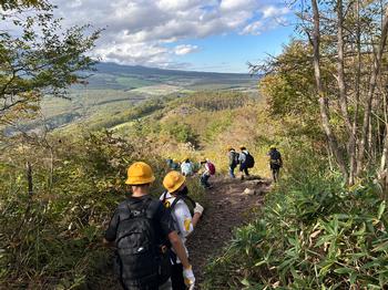 急でぬかるみもある下山コースを、足元泥だらけになって悪戦苦闘しながら、獅子岩駐車場まで降りてきました。バスで学園に向かいます。