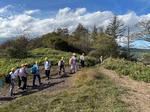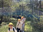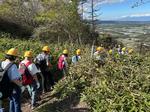 飯盛山登山の報告です。歩き始めて5分もすると「まだですか~」と言い出す子もいましたが、どんどん登っていきます。初めは森の中を歩くので、あまり暑さを感じませんでしたが、森を抜けると日差しが思いの外強く、皆、半袖になりました。ところどころで飯盛山の頂上の標や富士山、盆地が見えて、声をあげていました。