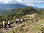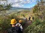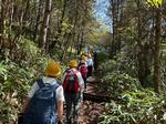 頂上で写真を撮ったら下山です。登りとは違うルートで、森の中の暗い道を降りていきます。前日までの悪天候で道がかなりぬかるんでいました。声を掛け合い、助け合いながら下山しました。