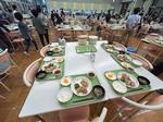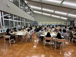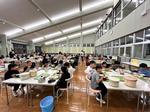 汐見小と合同で、広い食堂での夕食です。学園での食事は、長野県にゆかりのある食材を使っているそうです。皆、しっかりと食べました。