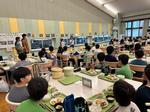 早くから厨房の方々が朝食と弁当を整えてくださっています。その後、食事係の子どもたちがご飯と味噌汁をよそって配膳します。今日の食事の挨拶は、駕籠町が担当です。家の朝食とボリュームが違うのか、あまり食事が進まない子もいました。