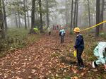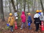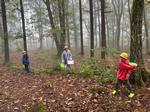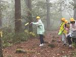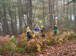 霧の中、学園の敷地内の森で、ディスクゴルフを楽しんでいます。5~6人のグループで、12ホール回ります。ディスクを投げて木に設置されているフラフープに入れるという簡単なゲームですが、ディスクが曲がったり戻ったりして思うように飛ばないので、前に進めるのに苦心しています。少々寒いのですが、仲良く楽しくゲームをしています。