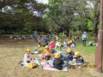 28日(火)に、1・2年が都営三田線を使って赤塚公園に遠足に行きました。往復は各クラスのまとまりですが、公園ではかごめ班のメンバーでの活動でした。到着後、班に分かれて公園内のオリエンテーリング(スタンプラリー)をしました。6か所のチェックポイントを探してスタンプをもらいます。2年生が良くリードしました。その後、弁当を食べました。食べ終わったらどんぐり拾いです。夢中になって拾いました。拾ったどんぐりはお土産とし、後で生活科の学習で使います。