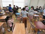 その後は各学級での活動です。担任と2学期の振り返りを1対1でしながら通知表をもらっています。大掃除もしっかりとしていました。