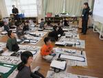 9日(金)、13日(火)とで、学年ごとに席書会を行いました。落ち着いた気持ちで取り組めるよう、静かな環境で心と姿勢を整え、先生から心構えや書き方の指導を受けた後、各自で取り組みます。書き終えたら先生に台紙に貼ってもらい、掲示してもらいます。自分の思うようなよい字が書けたでしょうか。作品は、各教室の廊下に掲示してあります。土曜授業公開日にご覧いただけます。