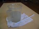動画を見たり、大きなビーカーに入った汚れた水に凝集剤を入れて水を浄化する仕組みを実際に見たりして、きれいな水道水が届くまでについて学びました。