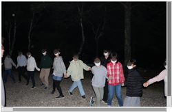 2日目の夜は、ホールでカードゲームをしたり、キャンプファイヤーをしたりしました。