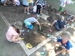 山を作ったり、掘ってみたり、ケーキ屋さんをしたり。