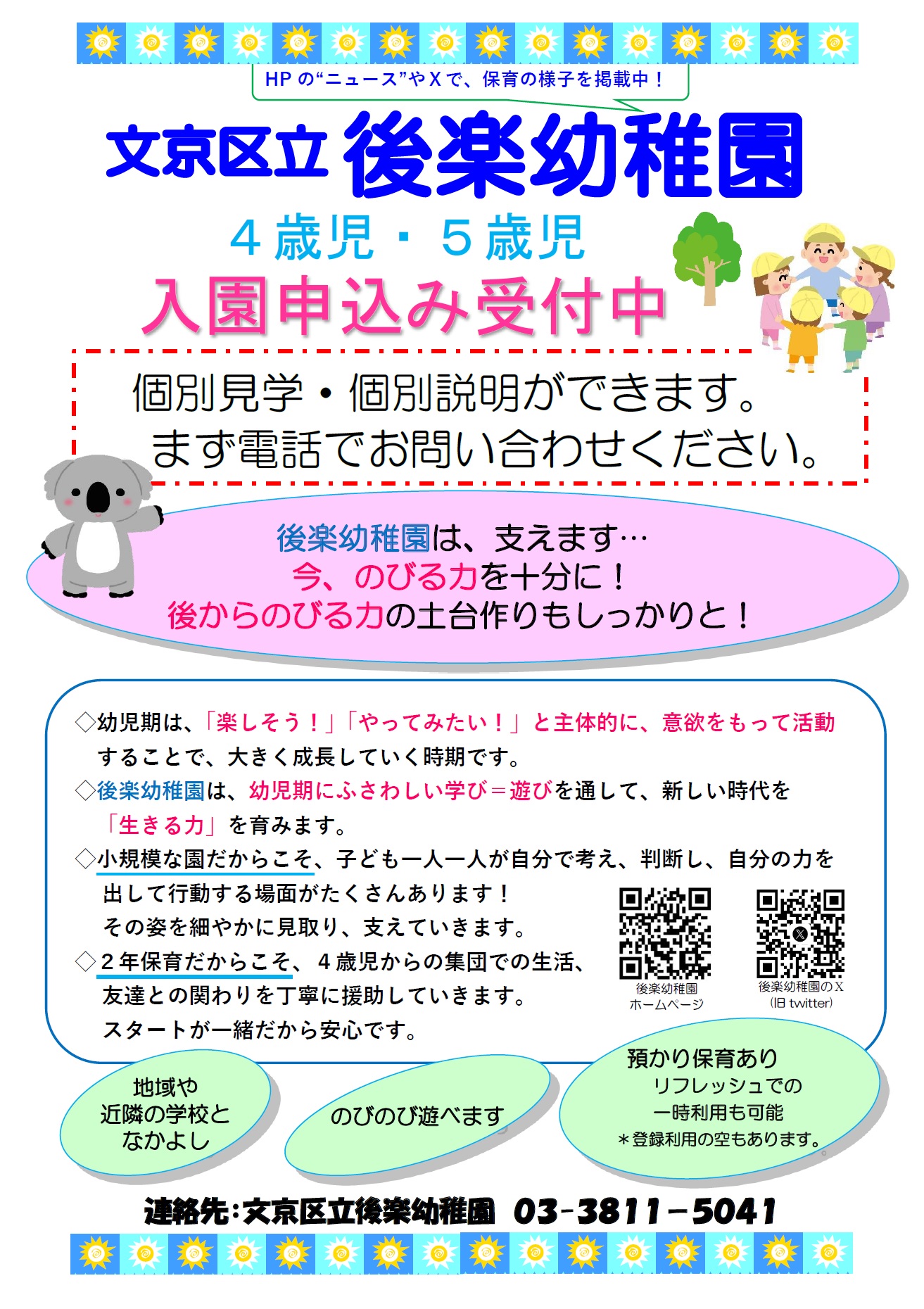 入園申込 受付中(保護者から見た本園の印象もご参考に!)