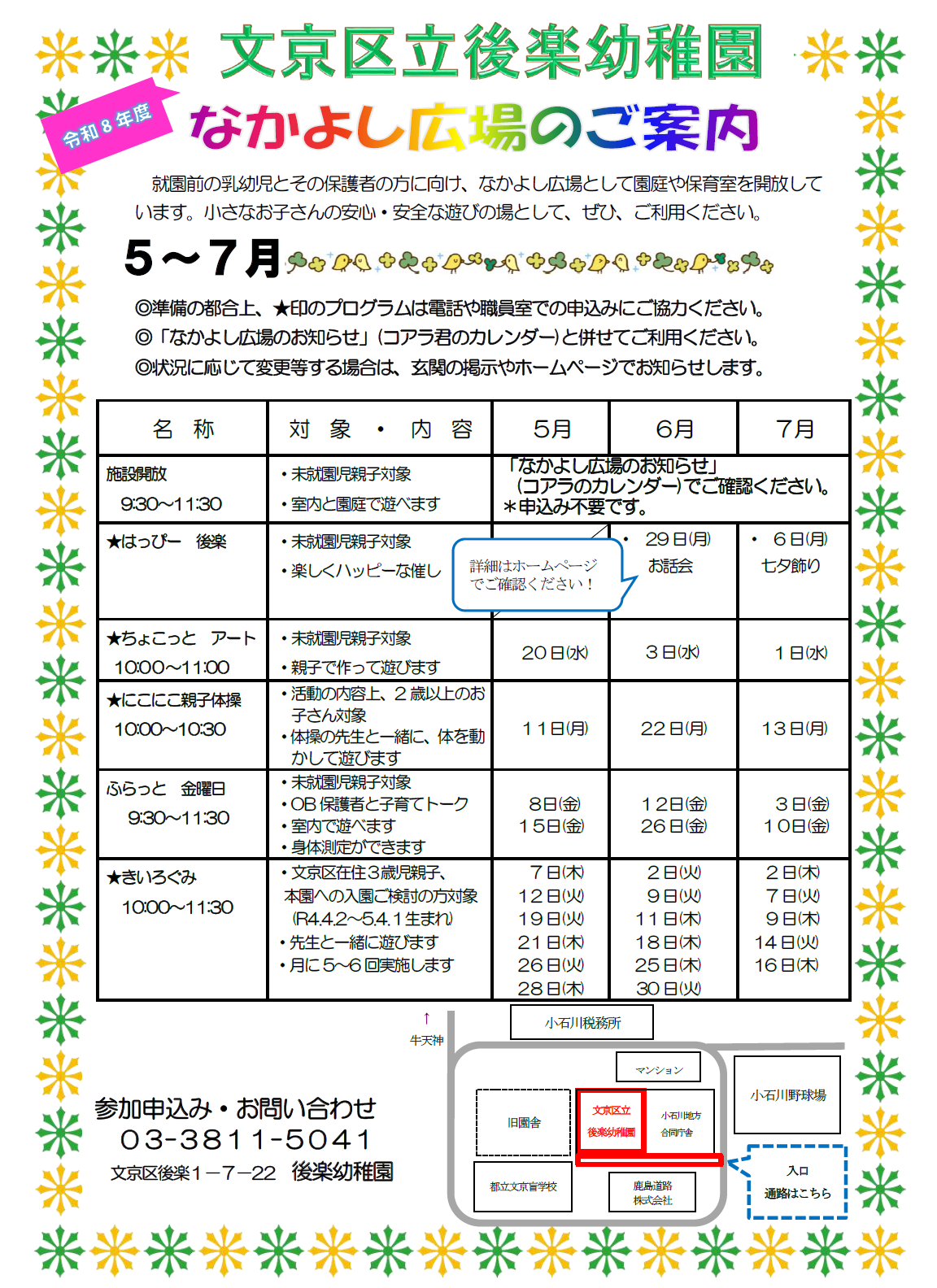 令和8年度 なかよし広場(5月~7月の予定・きいろ組募集中!)