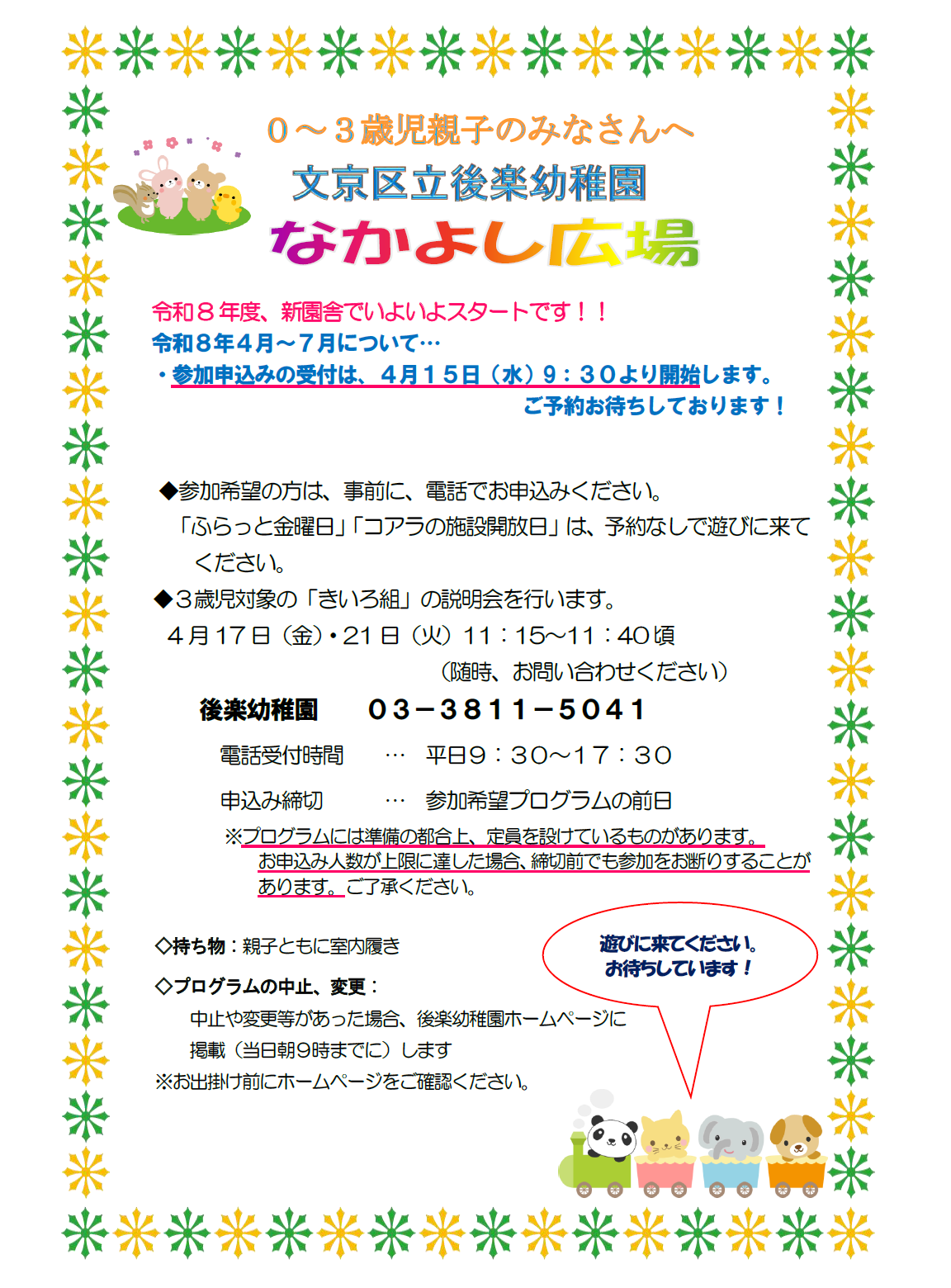 なかよし広場のお知らせ