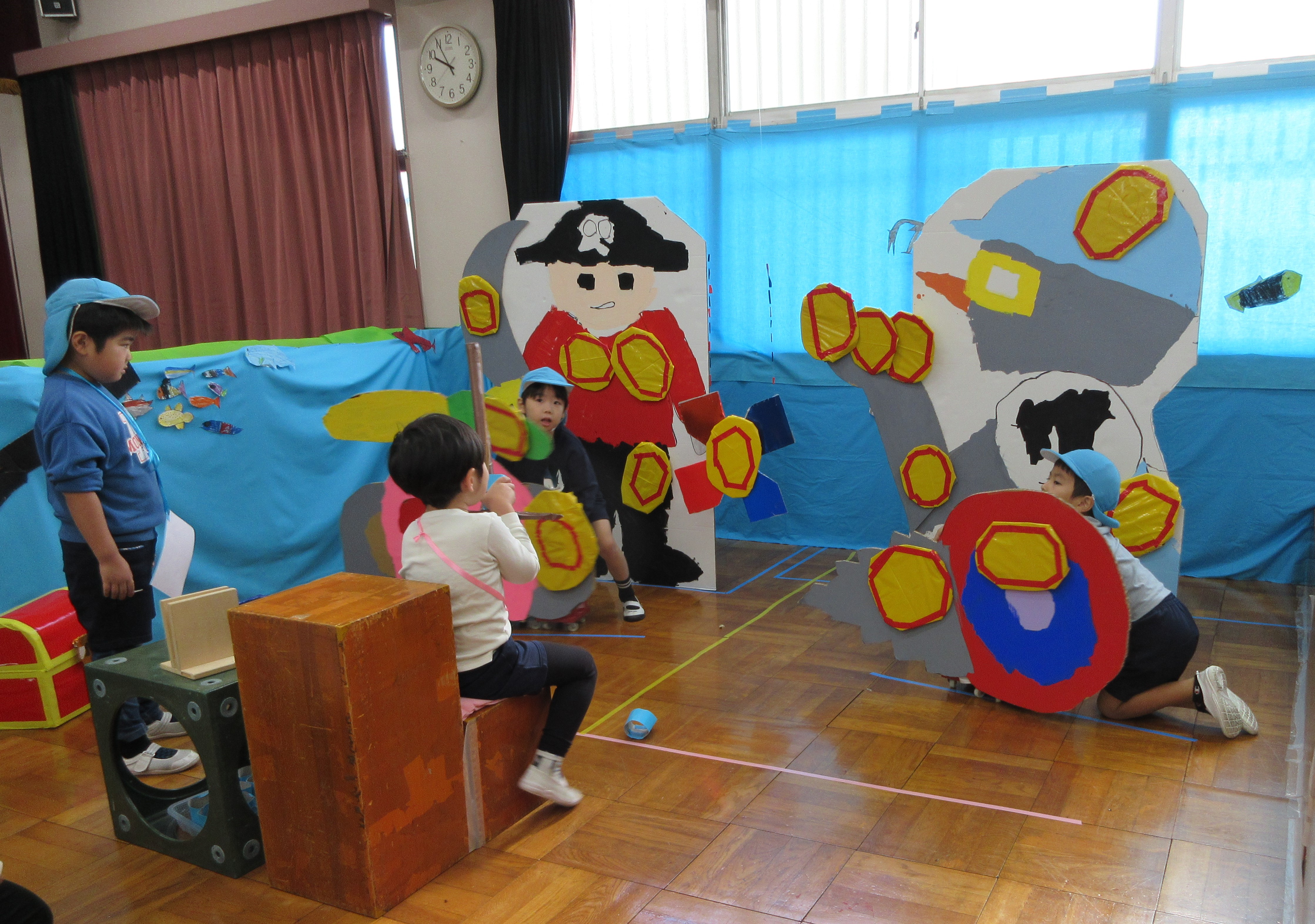 『スピード海賊キャノン』…海賊船から出てきた様々な敵を倒すため、的を狙い撃ちます。的は吊ってあったり、動いたりするので狙うのがとても難しいですが、当たると得点が入り、最後に係の人が結果を伝えてくれます。