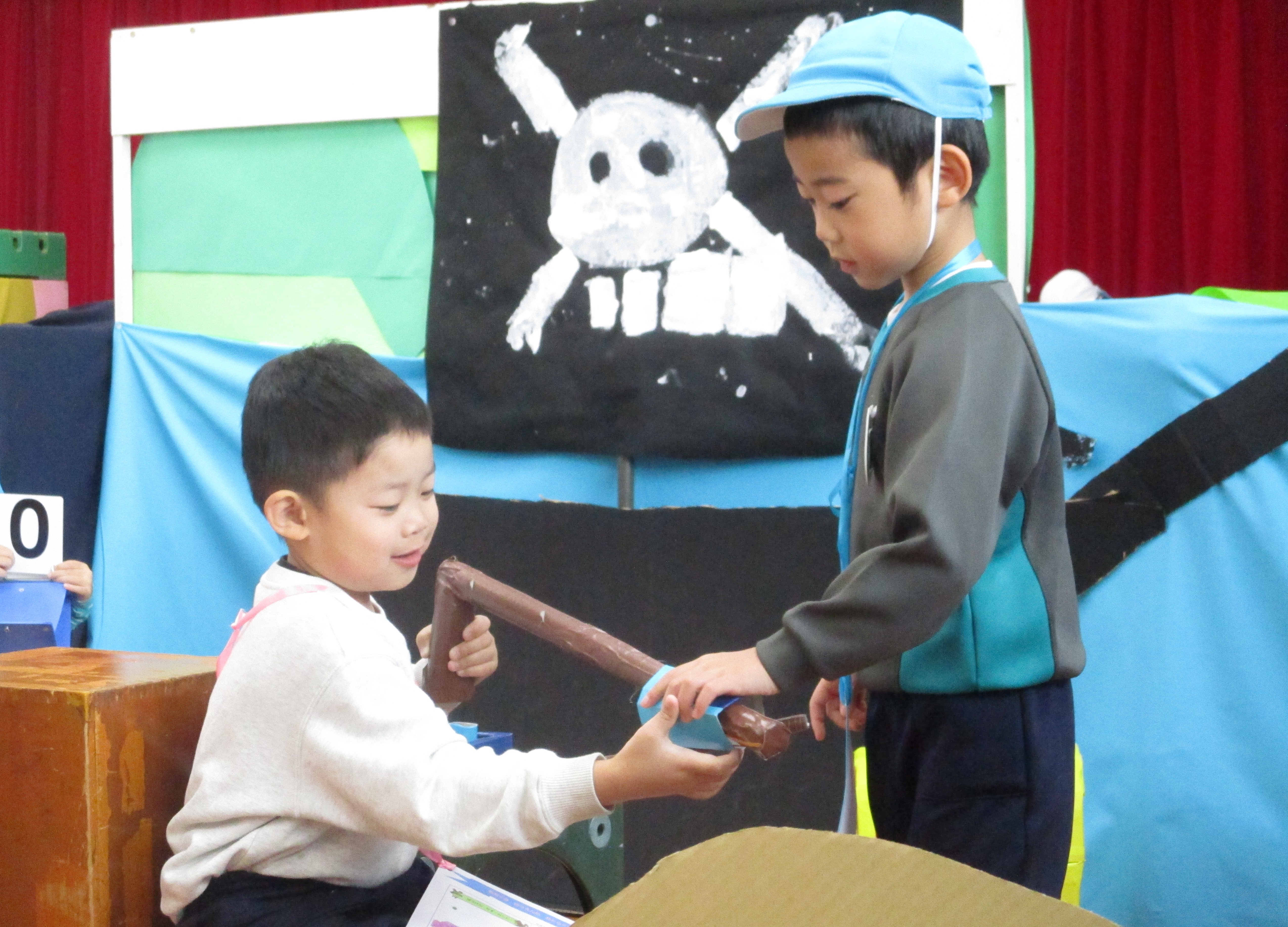 あお組の子どもたちは、グループの友達と力を合わせることで考えたことが実現できたり、お客さんに喜んでもらえたりする嬉しさを感じていました。あお組もお客さんもみんなニコニコで大成功でした。