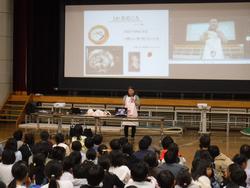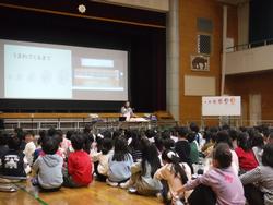 講話の中では、自分たちの命のはじまりがわずか0.1ミリほどであったことや、もしもりんごが人と同じような成長の仕方をしたら東京タワーほどの大きさになるというお話がありました。児童はそのスケールの大きさに大変驚きながら、興味深く耳を傾けていました。