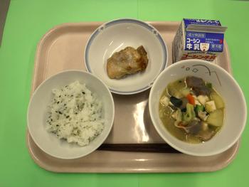 1年生は学校の給食に慣れるため、本日4/9(木)~4/14(火)の間、品数を減らした簡易給食としています。本日1年生には、わかめご飯と鶏肉の照り焼きを提供しています。