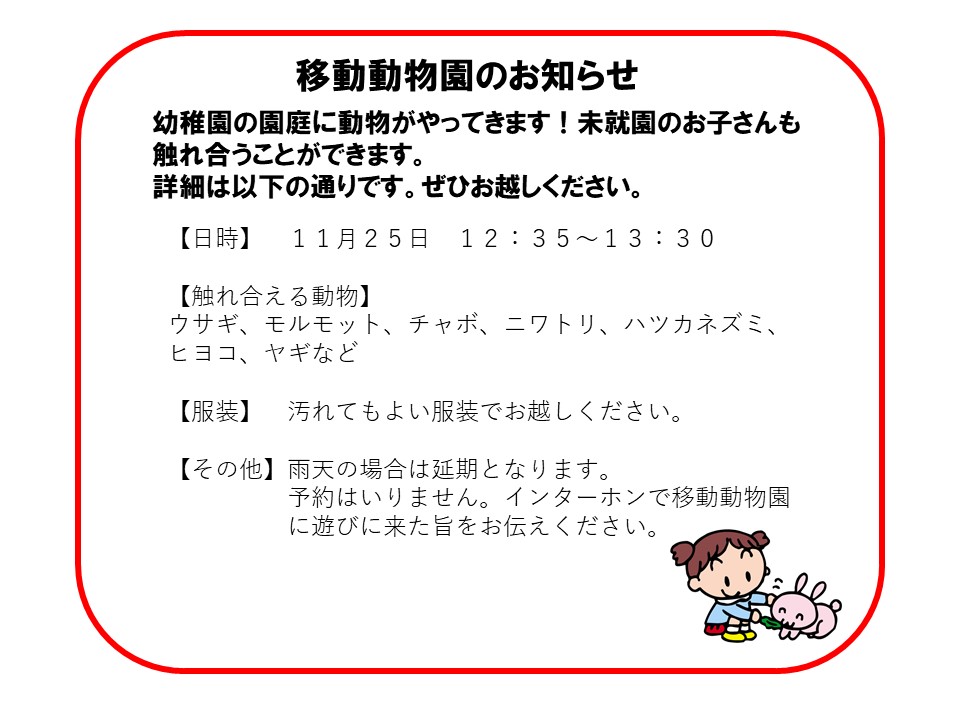 移動動物園のお知らせ