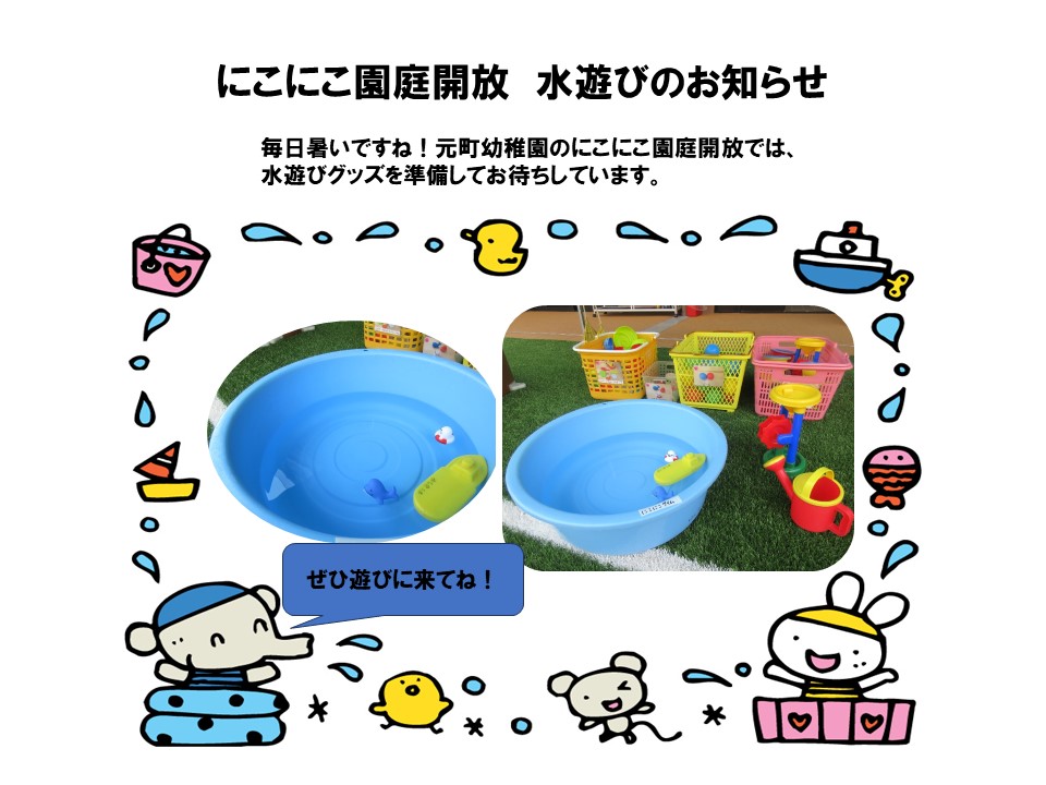 元町幼稚園では園庭を開放しています。時間は9時30分から11時です。雨天の場合は中止となります。