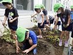 根津神社では園のマスコットキャラクターのねづちゃんを探して一緒に記念撮影をしたり、根津図書室で好きな本を読んだりするなど、気温が高くなるなか、たくさん歩いて地域に親しみ、いろいろな発見をすることができました。最後に園内の弥生の森で待っていた園長先生を見付けてシールをもらったらゴールです。
