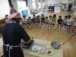 5月20日に年長ほし組が「チャレンジ日舞」の時間に日本舞踊を体験しました。花柳富士紗先生にお越しいただき、本物の扇子を使って踊りを教えていただきました。子どもたちは花柳先生をよく見ながら、すり足で進んだり、くるりと回ったりと一生懸命体を動かしていました。「日本には昔からこんな踊りがあるんだね」と、気付くことのできる貴重な体験をすることができました。