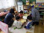 りす組では『あがりめさがりめ』などのわらべ歌を歌ったり、一緒にお手玉や絵合わせゲームをしたりして遊びました。また、いつも幼稚園で親しんでいるままごとや絵本などのコーナーに入っていただき、一緒に遊びながら普段の様子を見ていただきました。歌えるようになった幼稚園の園歌も聞いていただきました。
