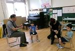 「これは何を表している音でしょう?」などと、楽しいクイズを交えながら、いろいろな曲を演奏してくださった芳村先生に拍手喝采の子どもたちでした