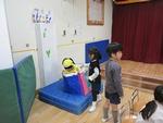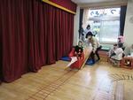 「親子体操」では、ツボタマンとターザンがやってきました。二人のパフォーマンスを見た後に、親子でふれあい遊びや様々な運動遊びをしました。