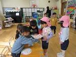 掘ったお芋は主事さんにふかしていただいて、全クラスでおいしくいただきました!残ったお芋は少しずつですが、お家へのおみやげで持って帰りました。