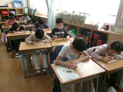 12月8日(月)、根津小学校の通知表の表紙絵を描いてくださったペン画家、スギヤマアートルームの杉山浩一様を講師にお迎えして、3年生にペン画教室を行いました。杉山さんからはペンの使い方や明暗の付け方など、ペン画の楽しさを教えていただきました。子供たちも初めは緊張しながら線を引いていましたが、慣れてくると自分なりに色の濃さを考えながら楽しく作品を作っていました。出来上がったクリスマスカードは家に持ち帰り、お家の方にこの日教わったことをお話ししました。とても充実した2時間でした。