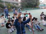 根津消防隊の皆さんに初期消火訓練やロープワーク、応急救護訓練を教わりました。