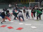 1年生とはチェッコリ玉入れ、2年生とは大縄跳び、3年生とは巨大オセロ、4年生とは綱引き、5年生とはリレー、熱い戦いをして盛り上がりました。