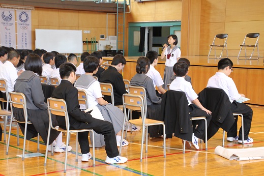 | 生徒会役員による開会宣言 | 議長団です。 | 生徒会から発表です。 |