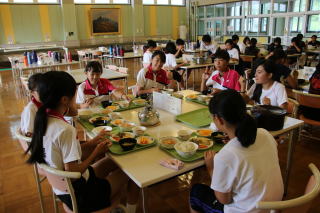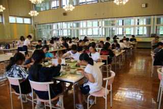 | 卓球部が配膳しました | 給食 | |