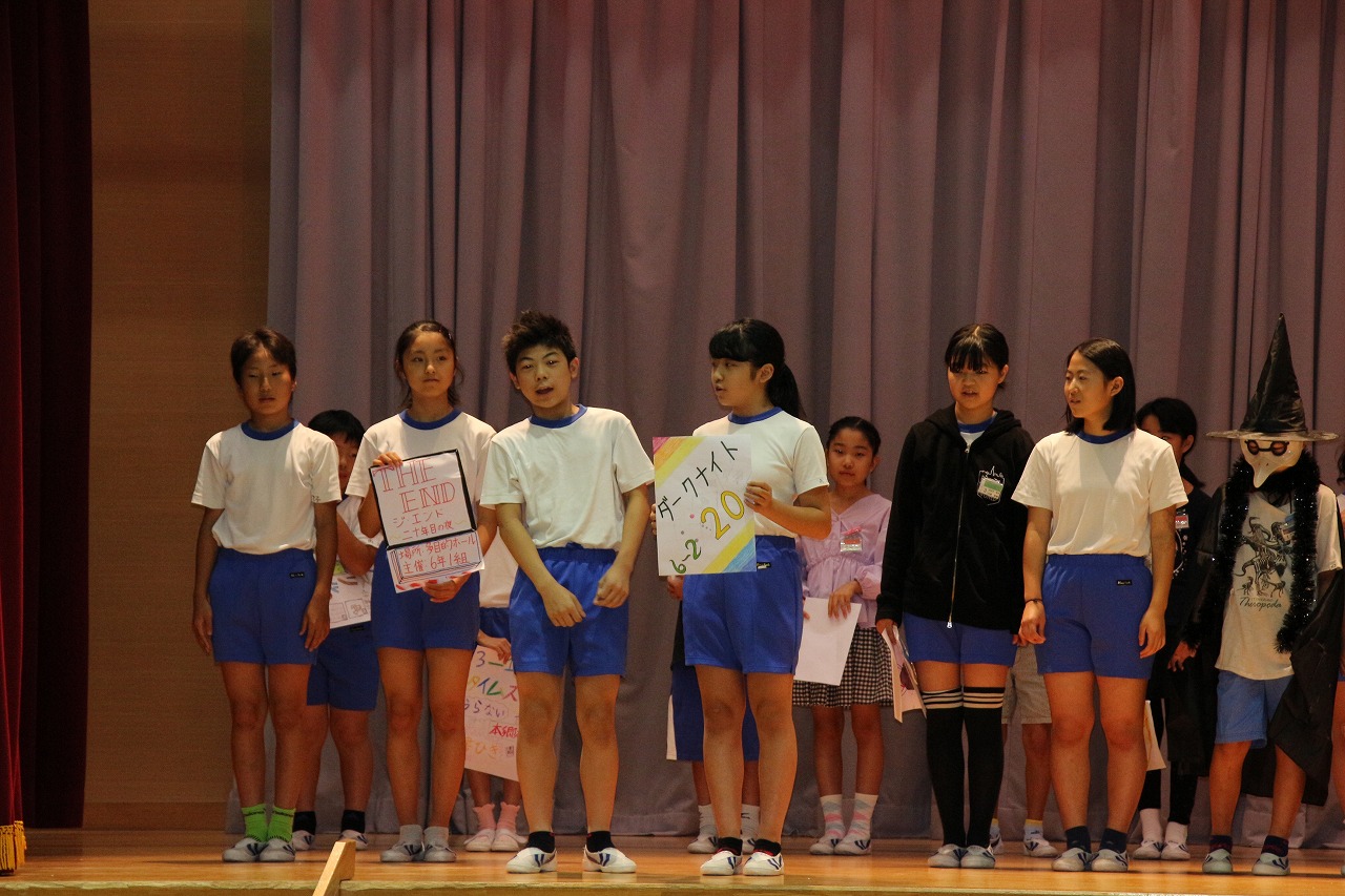 6年生の陸上記録会に向けて1〜5年生が励ます会を開きました。
