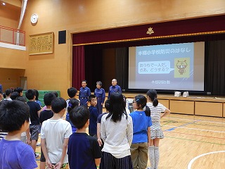 月に1回の安全指導日でした。今月は「知らない人にはついていかない」など犯罪から身を守る方法について、学年に応じた指導を行いました。