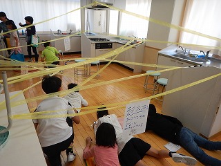大きな地震が発生し、学校に残った児童が校内に宿泊する、という設定で、4年生が防災宿泊体験を行いました。