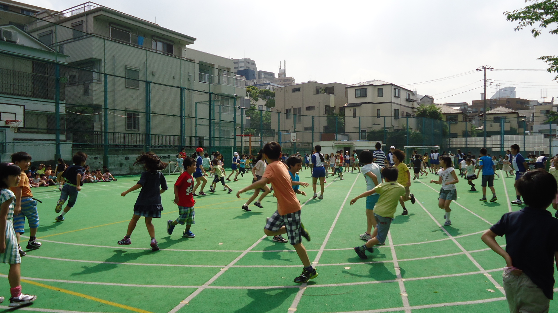 第2校庭でしっぽ取りゲームをしました。「健康な子」の全校での取組です。