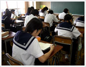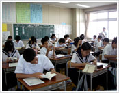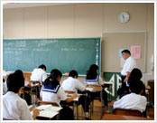 本校では数学科と英語科の授業を少人数で行っています。数学科、英語科ともに、各学年、それぞれのクラスを習熟度別に2分割し、生徒の習熟度に応じた指導を行っています。