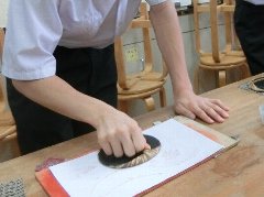 日本の伝統工芸の体験を通じて、伝統文化に親しみ、意識と理解を深めることを目的に、第2学年では「伝統文化講座」を実施しました。伝統的工芸品産業振興協会を通し、髙橋工房様のご協力により江戸木版画について学びました。江戸木版画の歴史的説明を受け、制作を体験しました。