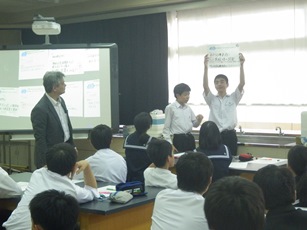 保護者及び地域の皆様に、茗台中学校の教科の授業の様子をご覧いただき、その後の意見交換会では、授業に対する貴重なご意見をいただきました。電子黒板が入っての初めての授業公開でしたが、茗台中の先生方は皆うまくPCを使いこなしていました。