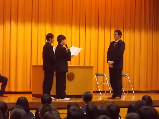 茗台中学校を去られた懐かしい先生方が、お越しになりました。代表生徒から、お別れの言葉、先生方からは心温まるメッセージをいただきました。