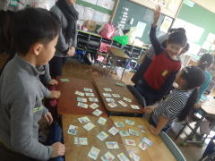 スイミ―のお話の雰囲気が伝わるよう、蝶ネクタイも自分達で作りました。「スイミ―」の台詞を言う子は黒の蝶ネクタイ、その他の子たちは「小さなか赤い魚たち」として赤の蝶ネクタイを見に付けて、本番に挑みました。