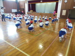 2年生は運動会で、「ラーメン体操」と「ゲッタバンバン」を踊ります。今、練習を一生懸命頑張っています。カラーうちわを両手に力強く大きく踊ります。ダンスの中で「ゴーゴーゴーゴー、ビクトリー」と大きな声で掛け声をかける場面もありますので、運動会当日を楽しみにしてください。