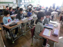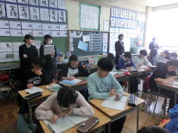 今日は地域の方をお招きして、3年生が昔のおかしをはじめ、昔の生活や町の様子などのお話を伺いました。当時は物が無くて、手作りのおかしを食べていたこと、スーパーマーケットはなくてパン屋さんや魚屋さんなどのお店が並んでいたことなどのお話を、子供たちは目を輝かせながら聞いていました。