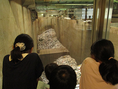 10月9日(火)に板橋清掃工場に社会科見学に行きました。見学に行く前に授業でごみの行方について学習し、「集められたごみはいったいどこへ運ばれ、どのように処理されるのだろう。」という疑問をもち、見学に臨みました。子どもたちは、清掃工場の中のごみバンカ(ごみをためるところ)があまりにも広く、また、ごみを移動させるごみクレーンがとても大きいことに驚いていました。また、大量のごみが毎日のように出され、東京湾の最終処分場があと50年ほどしかもたないことを知り、「このままだとぼくたちがおじいさんになるころにごみを捨てるところがなくなってしまう。」、「ごみをできるだけ出さないようにしなくちゃ。」などと感想をもち、大変有意義な一日となりました。