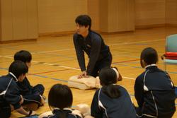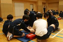 ドクターカーは普段見ることができない車の内部まで見せていただき、見慣れない器具に生徒たちは興味津々でした。また、心肺蘇生体験ではAEDの正しい使い方を学び、実際にAEDの指示に従いながら心臓マッサージなどを体験しました。