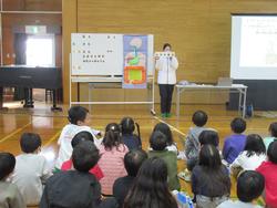 子供たちは、話を聞き、朝ごはんに何を食べたか思い返す等、自分の生活を振り返っている様子でした。