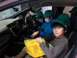 内側を歩くこと、右・左・右をよく見てから横断歩道を渡ることを知り、実際に模擬